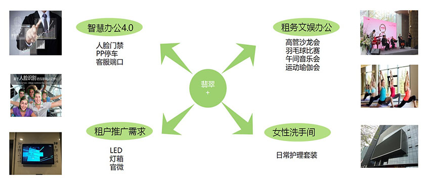 NEO-OFFICE:柔性辦公系列:創(chuàng)新型寫字樓或一般標準寫字樓創(chuàng)新柔性辦公、靈活、開放、個性的品牌內(nèi)涵以中小成長型、創(chuàng)新型企業(yè)為目標客戶