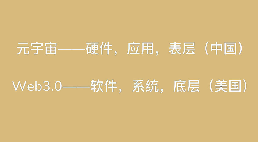 中國因?yàn)樽陨碓?,對需要硬件作為基礎(chǔ)的“元宇宙”較為推崇,同時應(yīng)用易于落地,選擇“元宇宙”方向符合邏輯。美國應(yīng)用層面較弱,更喜歡具有原創(chuàng)思想的“Web3.0”,布局長遠(yuǎn)的底層金融技術(shù),也適合自己的發(fā)展方向
