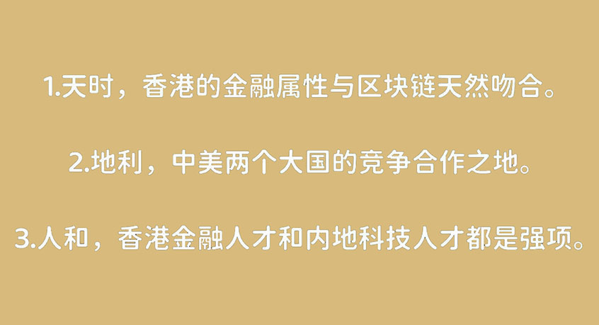 香港的天時、地利和人和 香港成為“元資產(chǎn)之都”,本來占盡了天時、地利、人和。它既不擔(dān)心加密貨幣沖擊美元地位,也不用擔(dān)心虛擬資產(chǎn)的無政府主義理念,完全可以全身心建設(shè)“元資產(chǎn)之都”。而中國和美國的項(xiàng)目要相互合作,借勢香港是自然選擇。大多數(shù)人也認(rèn)為香港是全球“共識之地”,是“金融之城”