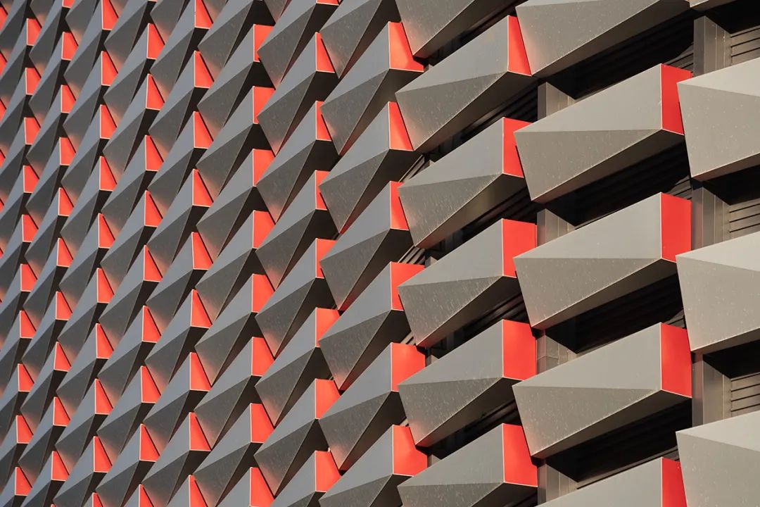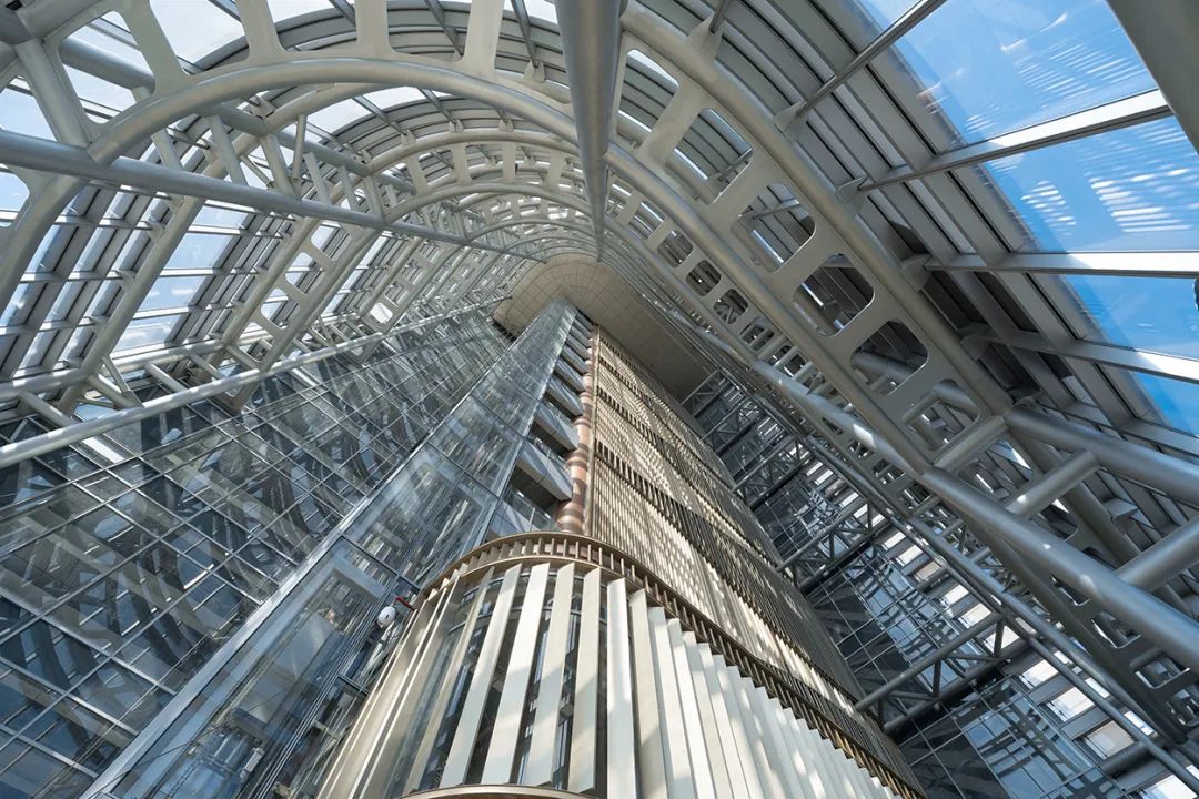 私募證券大廈 原大百匯廣場四個重疊立面屏風的設計靈感來自于該市的市花——勒杜鵑。在塔頂,外殼巧妙地包裹住一系列大型地中庭空間和頂端屋頂