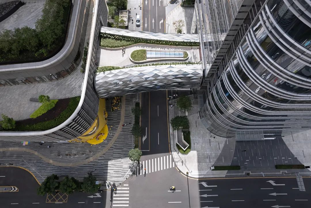 在福田的總體規(guī)劃中,塔樓群呈現(xiàn)“雙龍起舞”的布局,這一獨特的理念是KPF設計中的重要考量。高375米的大百匯廣場是“雙龍起舞”東側(cè)“龍脊”的最高建筑,使“龍脊”形態(tài)更顯完美