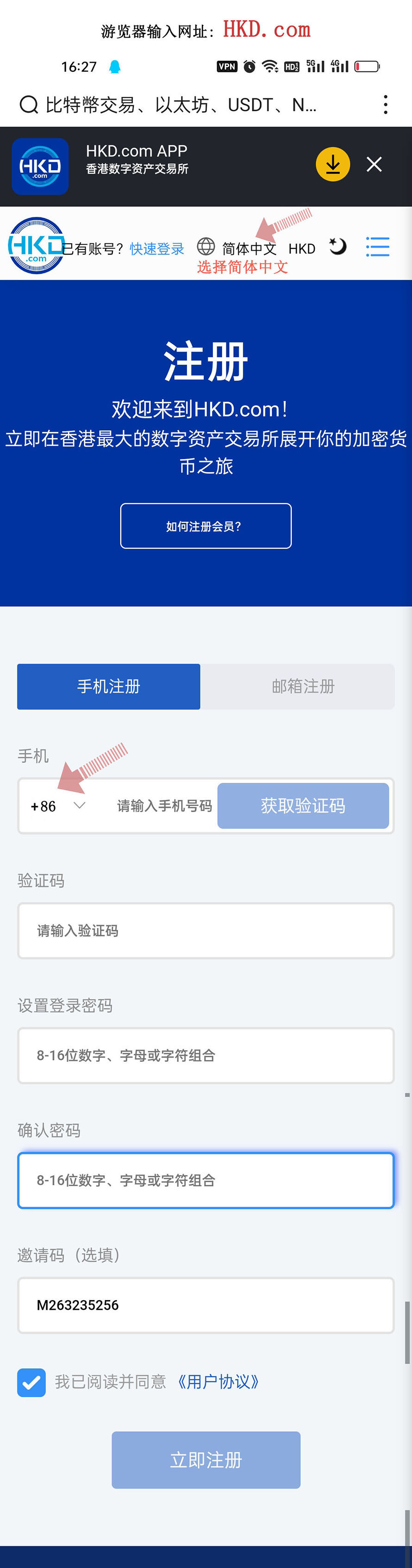 手機游覽器輸入網(wǎng)址: HKD.com 邀請碼:M263235256