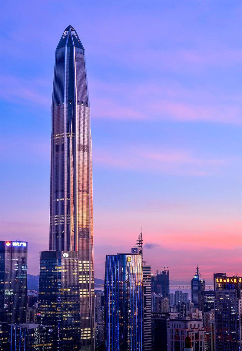 深圳平安金融中心【平安國際金融中心】:位于深圳市福田中心區(qū)、是集時尚、文化、商務(wù)、商業(yè)、休閑娛樂和餐飲于一體的多功能商業(yè)綜合體、其建筑面積約500.000平方米、囊括四個業(yè)態(tài)、包括甲級寫字樓、世界頂級酒店品牌Hyatt旗下最高端的柏悅酒店、云際觀光層以及高端體驗購物中心PAFCMall、其北塔寫字樓高592.5米、共118層、將為入駐的世界500強及金融企業(yè)提供定制化全方位的服務(wù)和配套、華南首屈一指的商業(yè)地標(biāo)