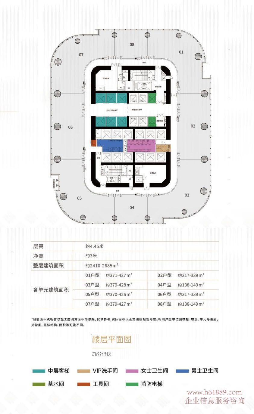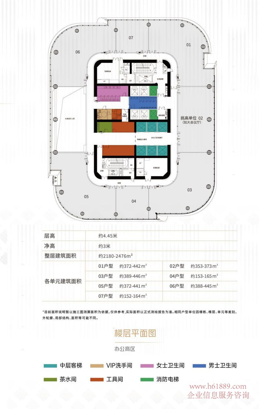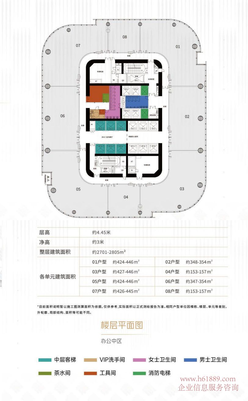 標(biāo)準(zhǔn)層:約2200-2800m、4.45m層高、辦公中區(qū)(25-39F)