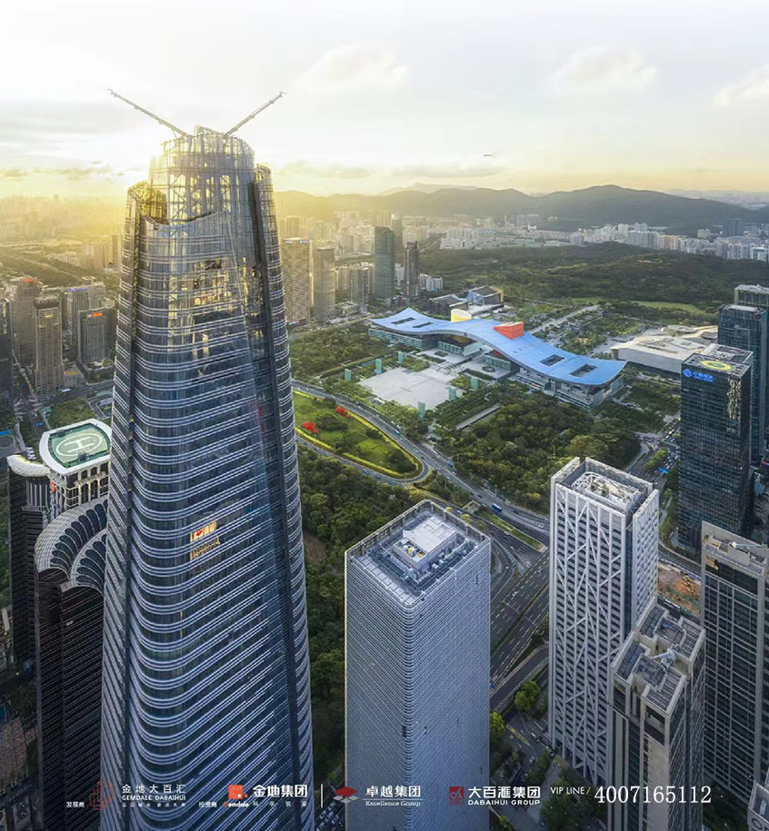 私募證券大廈【大百匯廣場(chǎng)】:380米云端視野、園山湖海四重景觀近瞰蓮花山、市民廣場(chǎng)等城市綠色配套遠(yuǎn)眺梧桐山、深圳灣等深圳東西全景享受“一覽眾山小”的辦公新視野