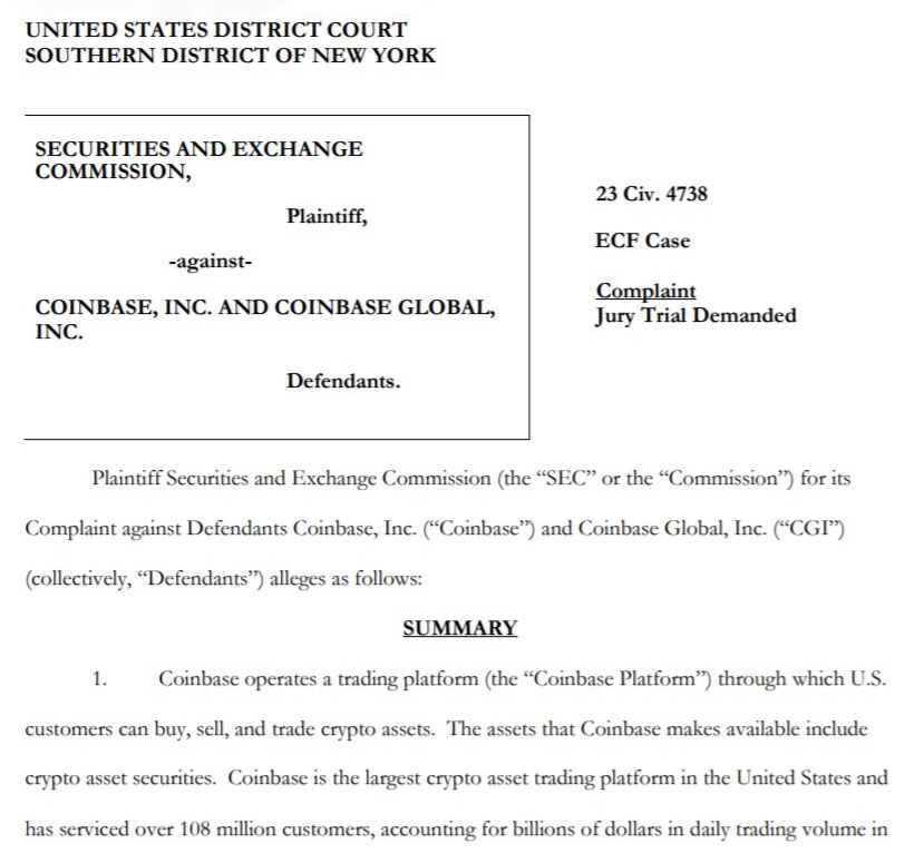 加密貨幣生死攸關(guān)的時(shí)期來了,在對(duì)幣安起訴后,2023年6月5日美國(guó)證券交易委員會(huì)(SEC)在紐約聯(lián)邦法院對(duì)加密貨幣交易所 Coinbase 提起訴訟。如果說業(yè)務(wù)上幣安還可以逃過一劫的話,不能解決,那Coinbase則會(huì)直接面臨死亡威脅了。因?yàn)?/span>Coinbase80%以上收入來自美國(guó)市場(chǎng),非法從事證券則有可能讓它事業(yè)萎縮然后轟然倒塌