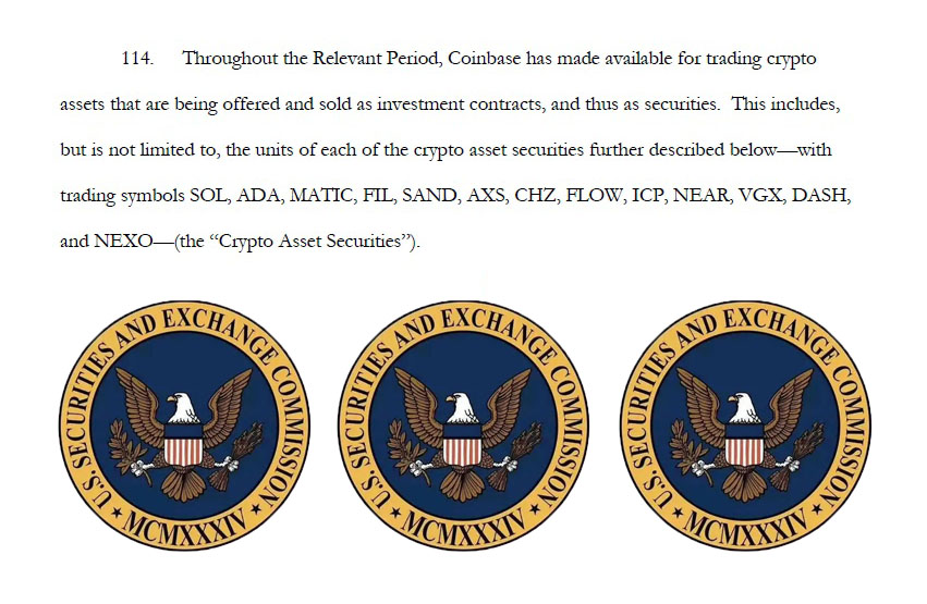 代幣是證券如果交易所被監(jiān)管拆分,那相應(yīng)的上市的這些幣種代幣則應(yīng)該會(huì)歸類為證券了, SOL、ADA、MATIC、FIL、SAND、AXS、CHZ、FLOW、ICP、NEAR、VGX、DASH 和 NEXO這些也只是開始被SEC直接俄列出來的,后續(xù)的一些也會(huì)繼續(xù)包含在內(nèi)
