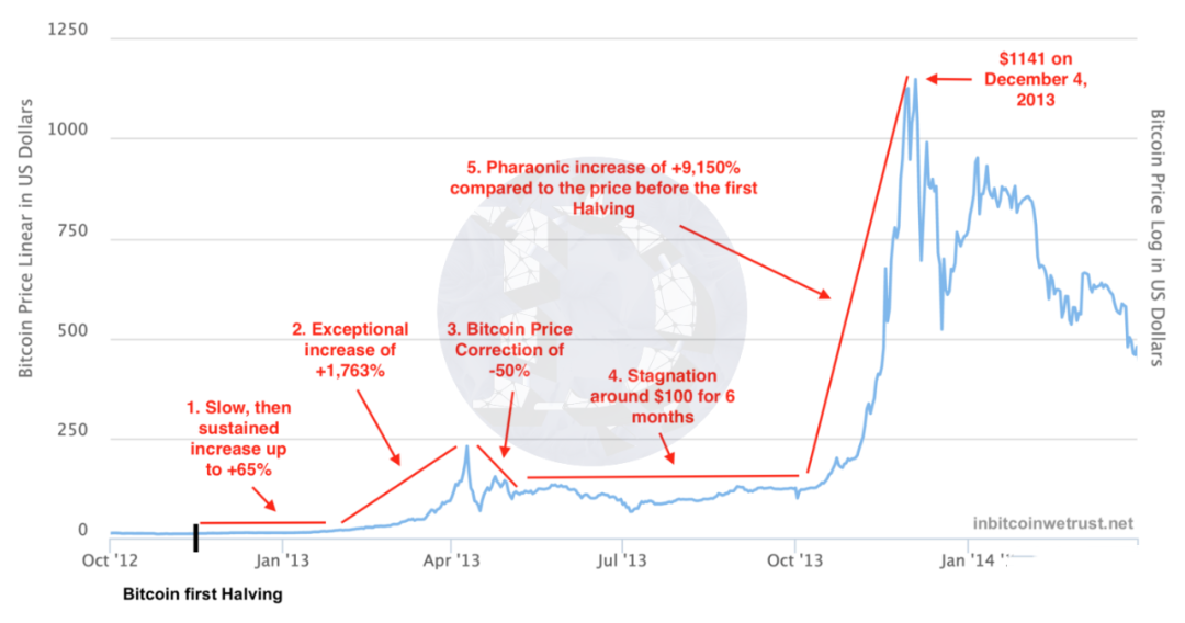 2012年11月28日:第一次比特幣減半,區(qū)塊獎(jiǎng)勵(lì)從50BTC減半到25BTC