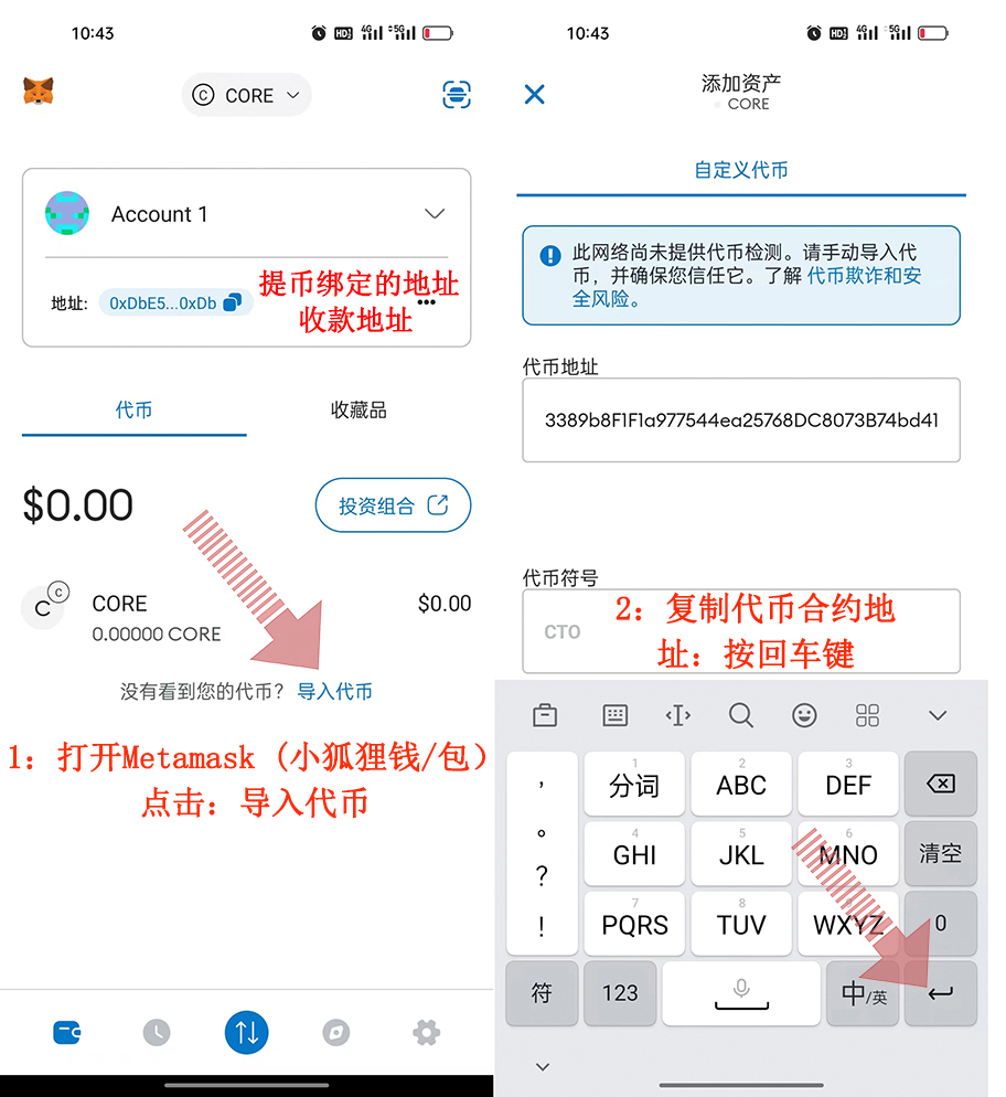 添加:CORE“酷爾幣”合約