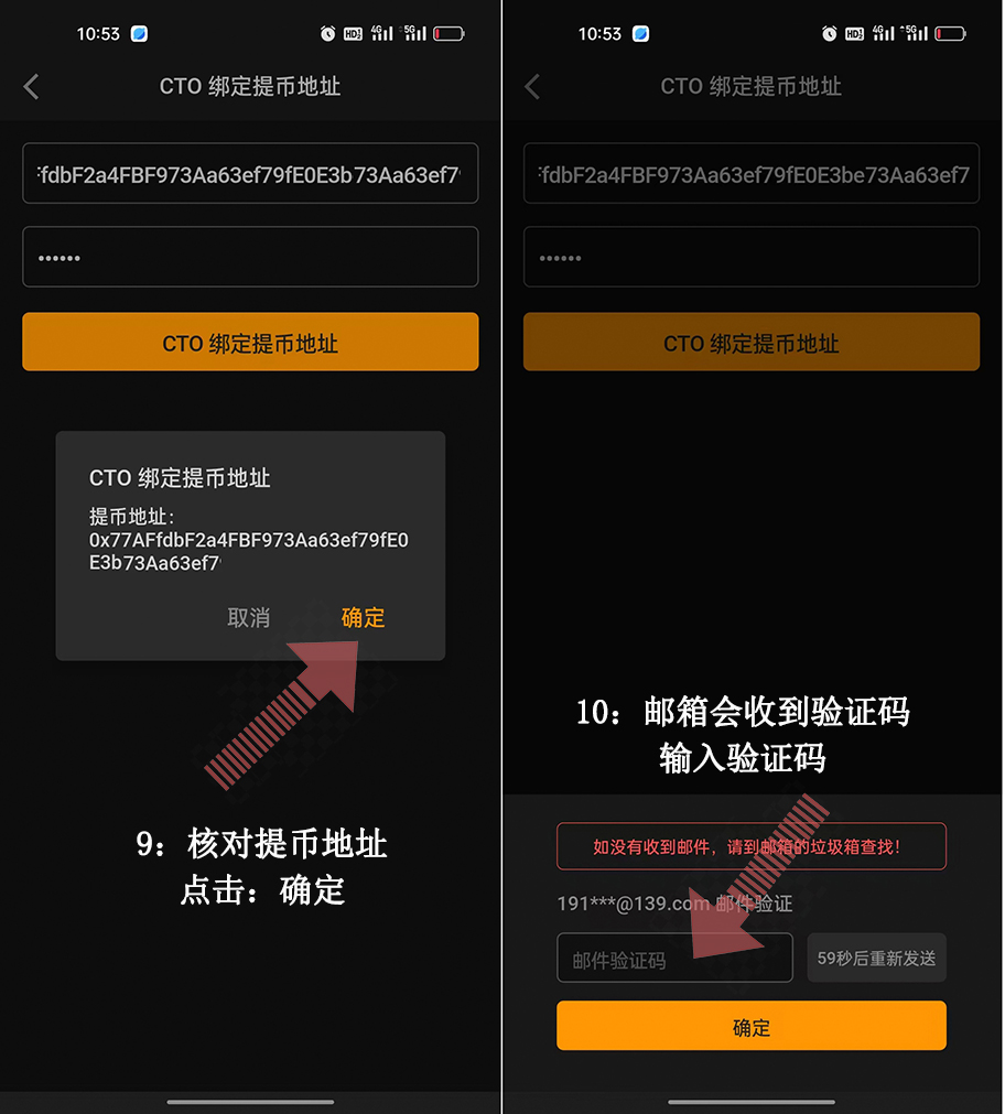 9:核對(duì)提幣地址:點(diǎn)擊:確定