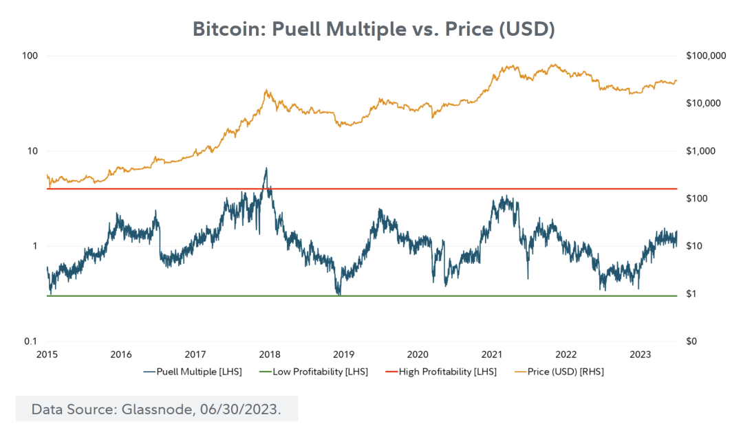 從PuellMultiple指標(biāo)中可以看出,比特幣礦工保持了健康良好的利潤(rùn)率