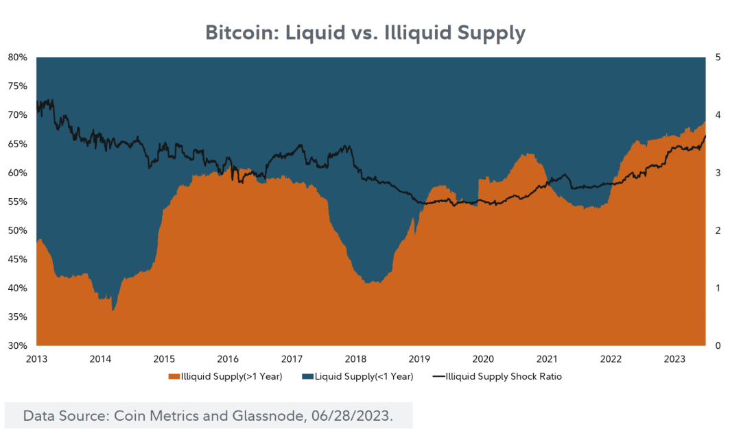 比特幣的非流動(dòng)性供應(yīng)維持在目前約69%的水平