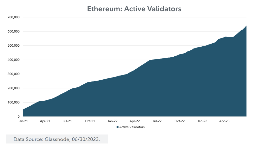 目前活躍驗(yàn)證者數(shù)量已經(jīng)從2023年初的停滯期恢復(fù),截至今日,今年以來(lái)的活躍驗(yàn)證者數(shù)量增加了大約29%,其中15%是在2023年第二季度增加的。