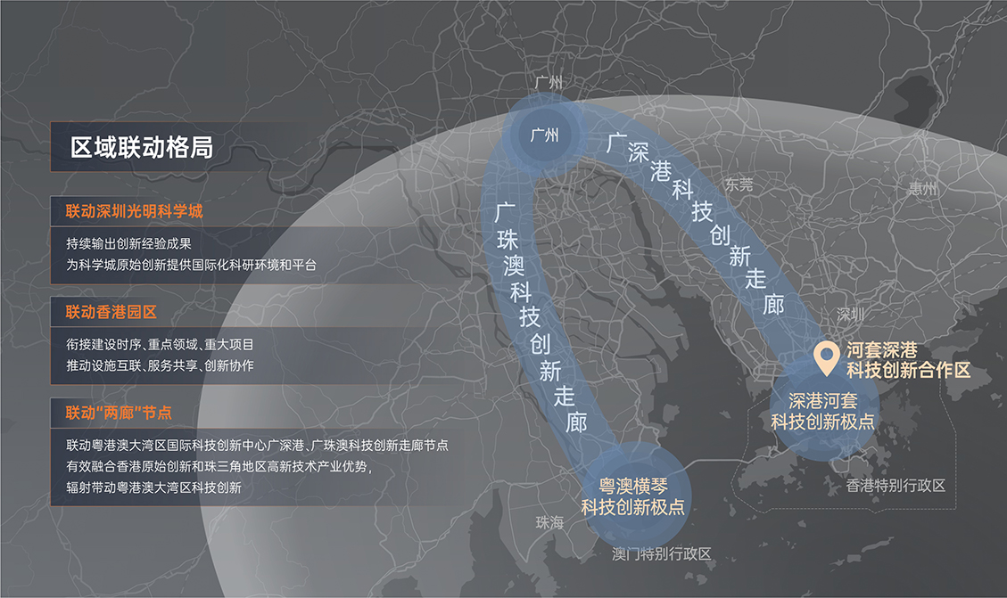 “兩廊兩點”深港河套科技創(chuàng)新極點兩廊:廣深港科技創(chuàng)新走廊、廣珠澳科技創(chuàng)新走廊兩點:深港河套科技創(chuàng)新極點、粵澳橫琴科技創(chuàng)新極點