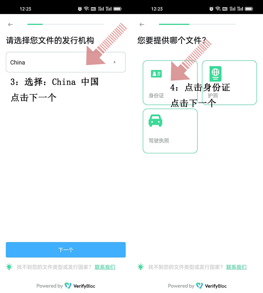 4:點(diǎn)擊身份證、點(diǎn)擊下一個(gè)