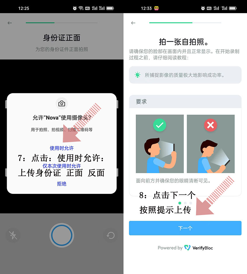 7:點(diǎn)擊:使用時(shí)允許:上傳身份證:正面 反面