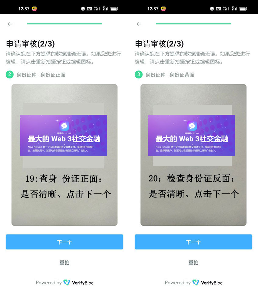 19:檢查身份證正面:是否清晰、點(diǎn)擊下一個(gè)