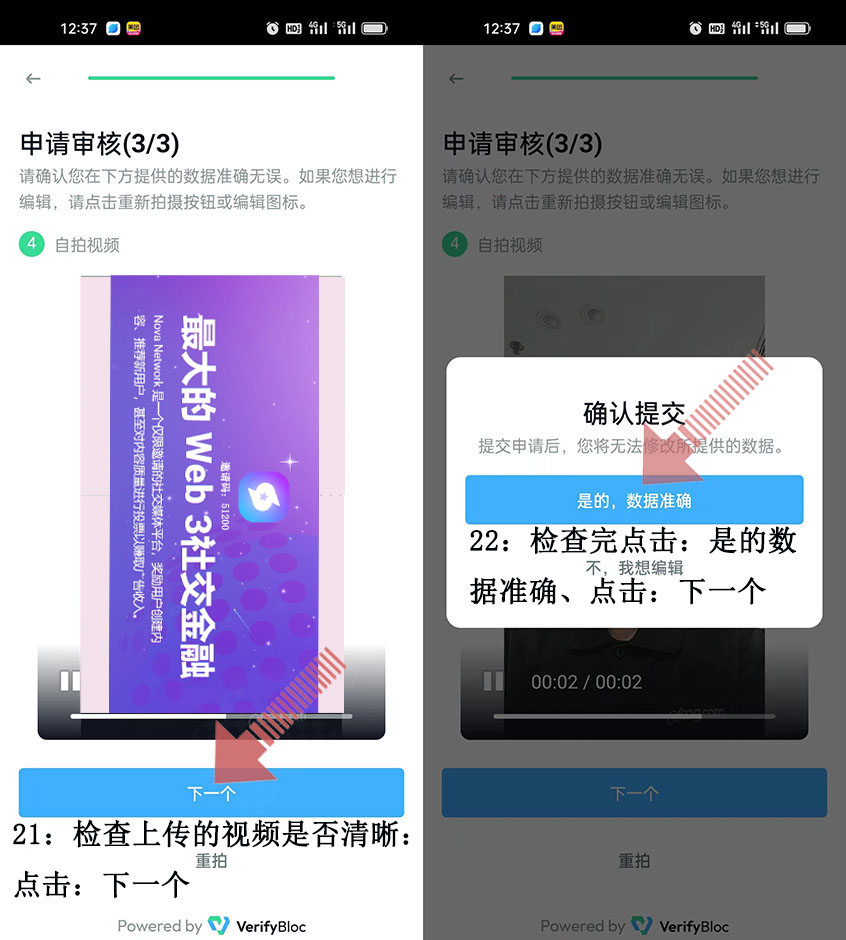 22:檢查完點(diǎn)擊:是的、數(shù)據(jù)準(zhǔn)確:點(diǎn)擊:下一個(gè)