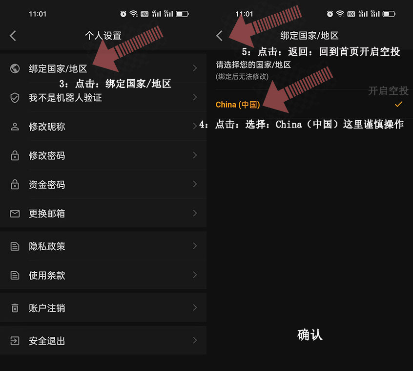 3:點(diǎn)擊:綁定國家/地區(qū)